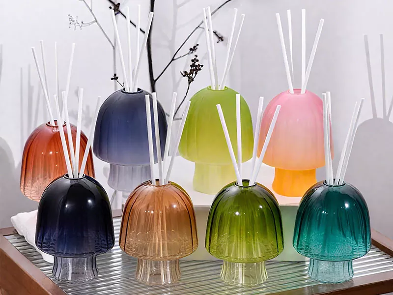 4. Difuzorius: Aromato difuzoriai su aptakių stiklo difuzorių bazėmis.
