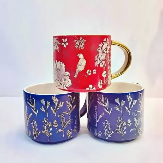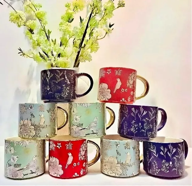 Šis keraminis puodelis su elektrine aukso rankena, kruopščiai pagaminta lipdukais, įkūnija unikalų gamtos įkvėptą žavesį. Nesvarbu, ar tai subtilios žydinčių gėlių tekstūros, gyvybingos niūrių paukščių formos, ar žavūs natūralių spalvų blokų modeliai, puodelis subtiliai atspindi floros, faunos ir ryškių spalvų dovanas. Norėdami tikti kiekvienam stiliui, puodelio rankeną galima pritaikyti. Auksiškai padengta versija šviečia turtingu auksiniu atspalviu, primenančiu 18k aukso, pridedant rafinuotumo. Jis taip pat gali būti pritaikytas jūsų mėgstamai spalvai.