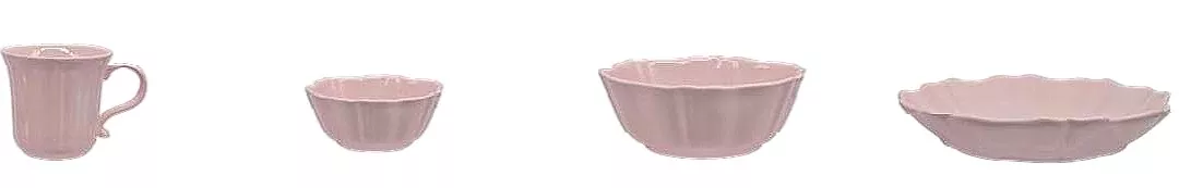 Šiame „Macaron“ rožinio keraminio dubenėlio rinkinyje yra devyni gabalėliai (dubuo, plokštė, gilioji plokštė, arbatinukas ir arbatinukas). Šis universalus produktas gali būti pritaikytas individualiai arba kaip visas devynių rinkinių rinkinys. Galima įsigyti kiekvienos valgomojo progos, pradedant pusryčių javų dubenėliais ir baigiant vakarienės lėkštėmis iki popietinių arbatos puodelių, rinkinys patenkina įvairius poreikius.